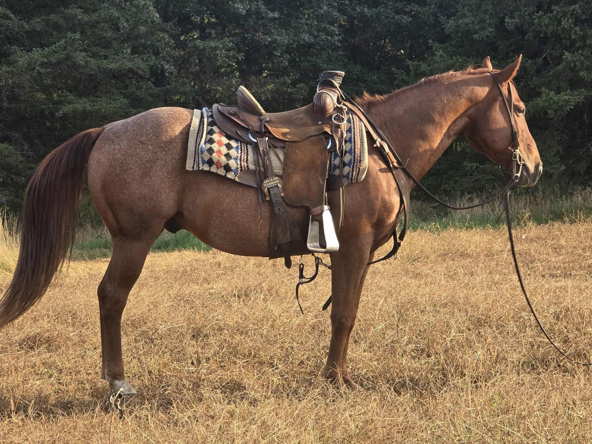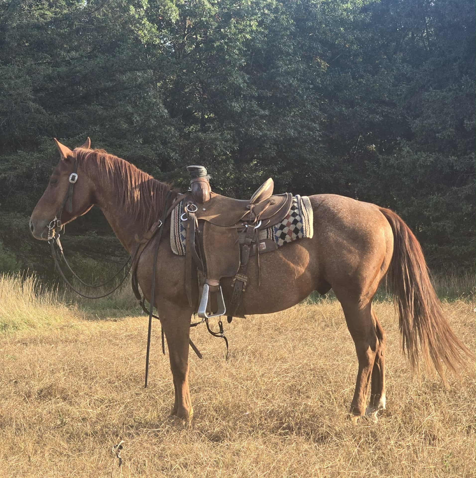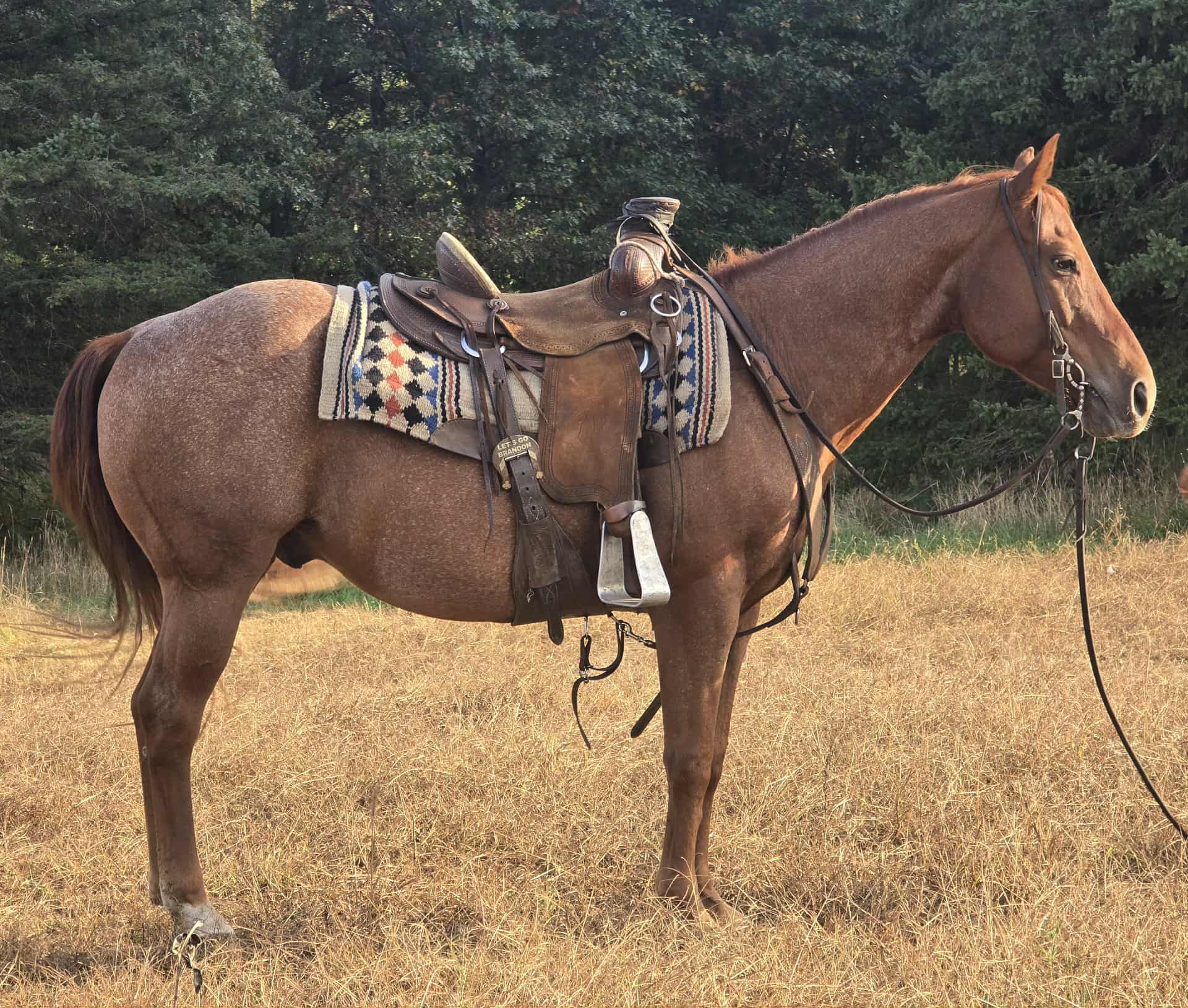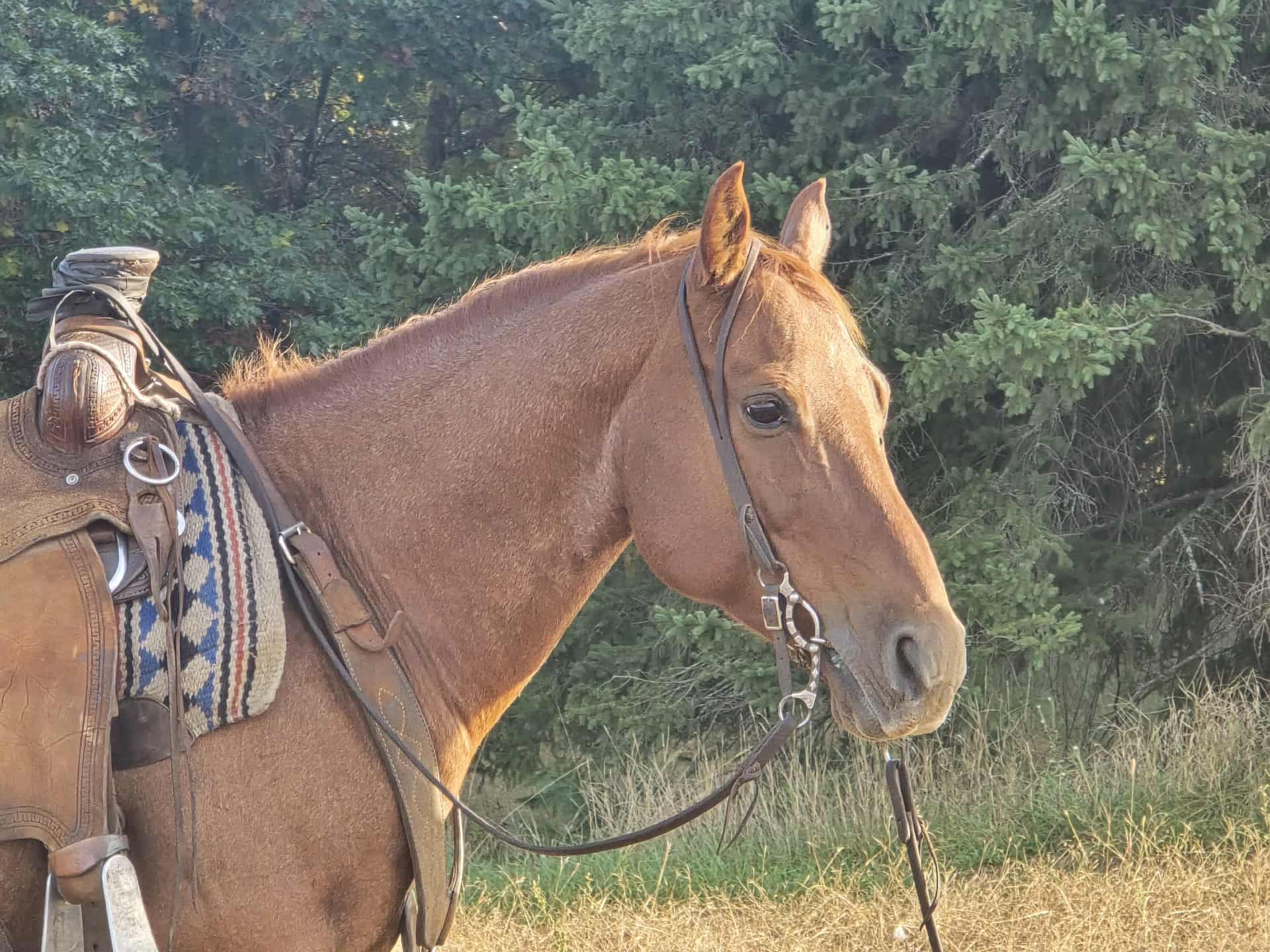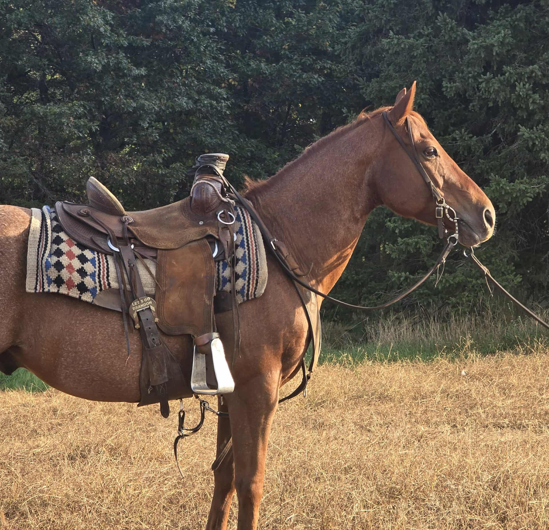Hammy is the dog gentle gelding your whole family has been in search of! Super in your pocket. He is not overly fancy so someone not as experienced wont fall off of him. One hand neck reins but again not super fancy! He will move off of leg cues too or direct rein if thats your preference! Stands like a gentleman to saddle and bridle. He is an easy guy to get along with and has never given us any fuss. Picks up his correct leads and sides passes. Ham rides good in a group or alone! Hes super easy to catch anywhere and everywhere no having to chase him around getting upset. He does currently have a full set of shoes on since he came out of working in the feetlots but he does not require them. No known maintence with him and he is just currently on pasture and hay. He is an easy keeper.